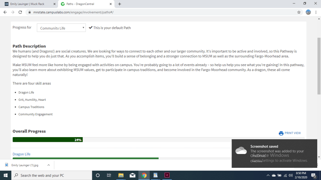 On Your Own Time Pathways promo: Above is a slideshow of social media content that the Creative Communications Specialist and I worked on together. I wrote the copy and she color-coordinated each graphic to a certain Pathway. For example, the purple graphic was for the Equity and Inclusion Pathway. This campaign was created to promote Pathway items you can do from home while isolated. Completing Pathway Items also entered students into a drawing. More context was given in the caption on social media.